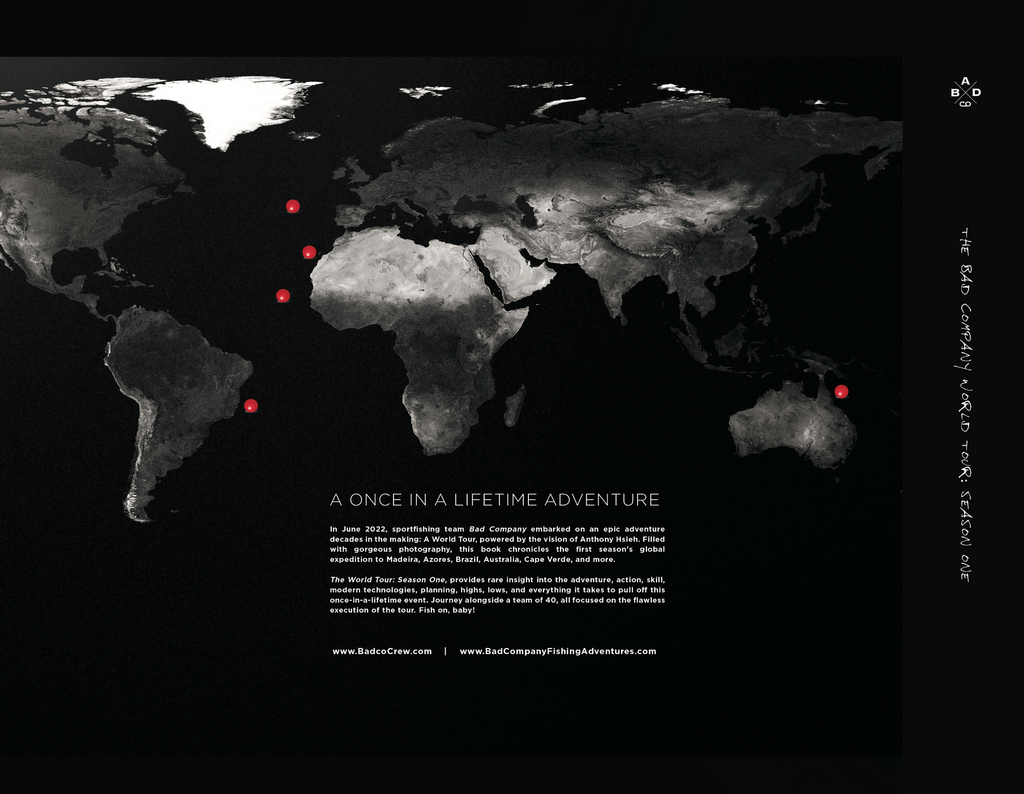 In June 2022, sportfishing team Bad Company embarked on an epic adventure decades in the making: A World Tour, powered by the vision of Anthony Hsieh. Filled with gorgeous photography, this book chronicles the first season's global expedition to Madeira, Azores, Brazil, Australia, Cape Verde, and more.