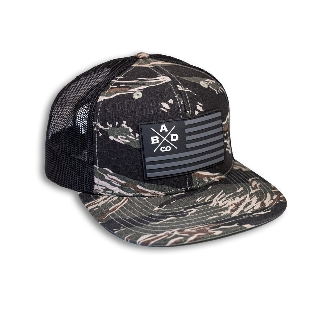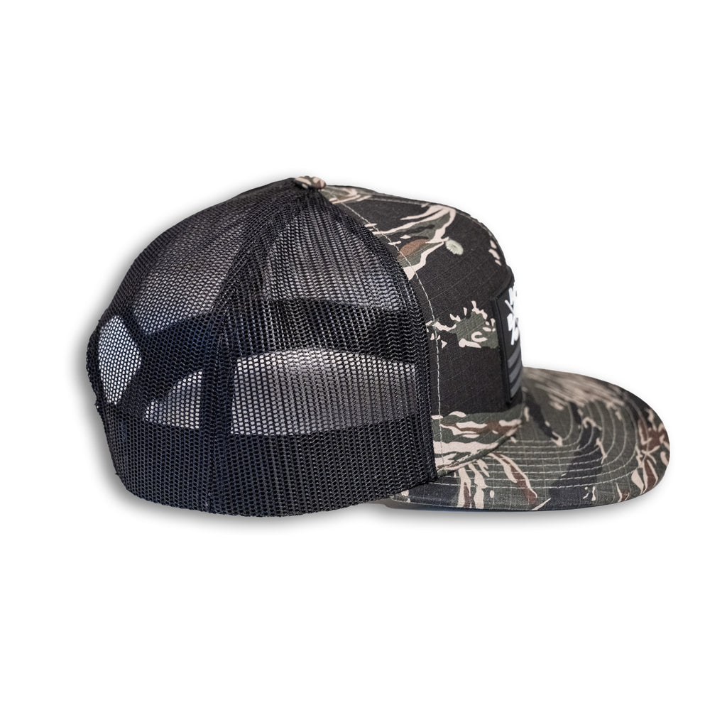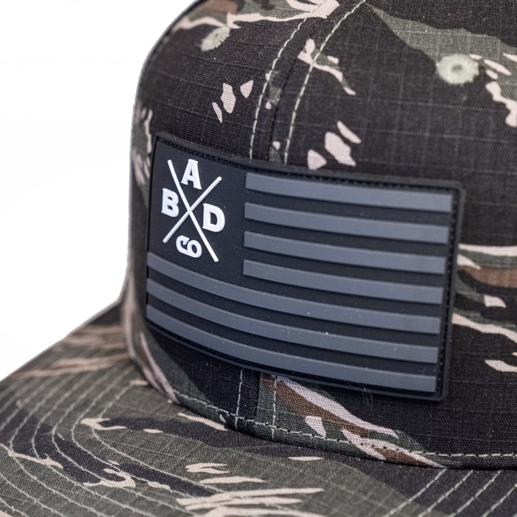 NEW - BADCO X American Flag Patch Tiger Camo/Black Bill Hat