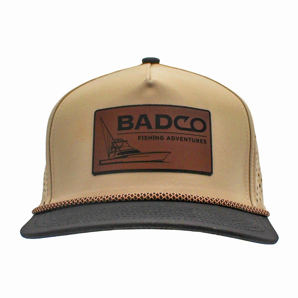 Clean and classic, this cream-and-black trucker hat features a premium leather patch with the BADCO logo. Lightweight, breathable, and ready for any adventure on or off the water.
