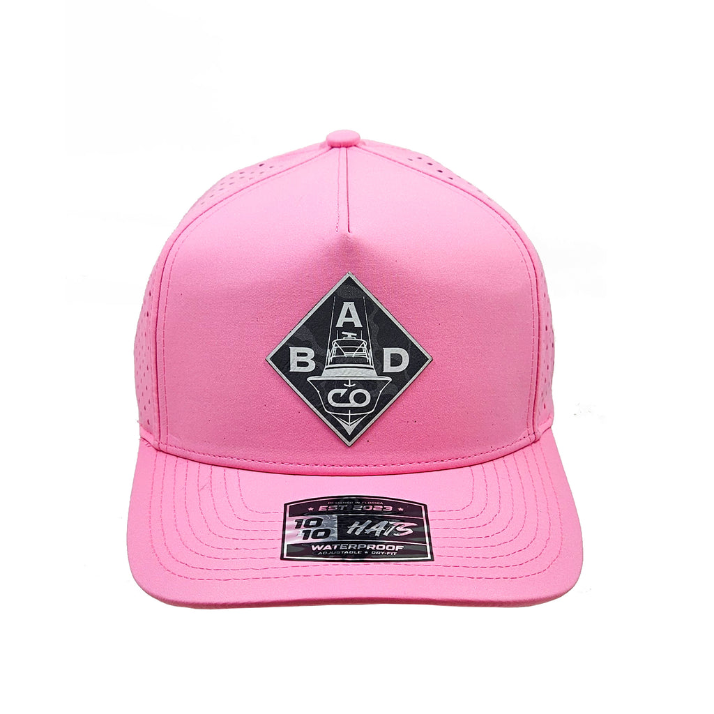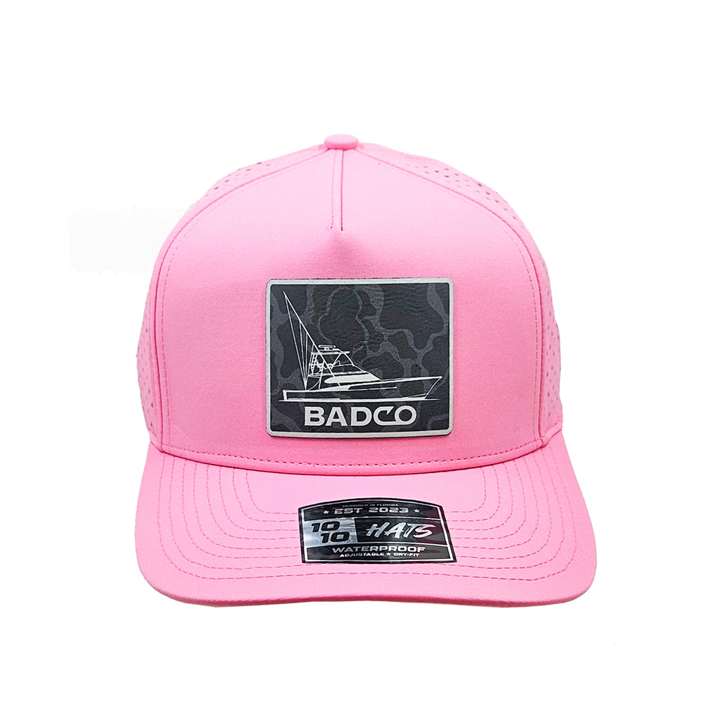 Make a bold statement with this vibrant pink hat featuring a subtle camo leather patch with the BADCO logo. Lightweight, durable, and perfect for days on or off the water.