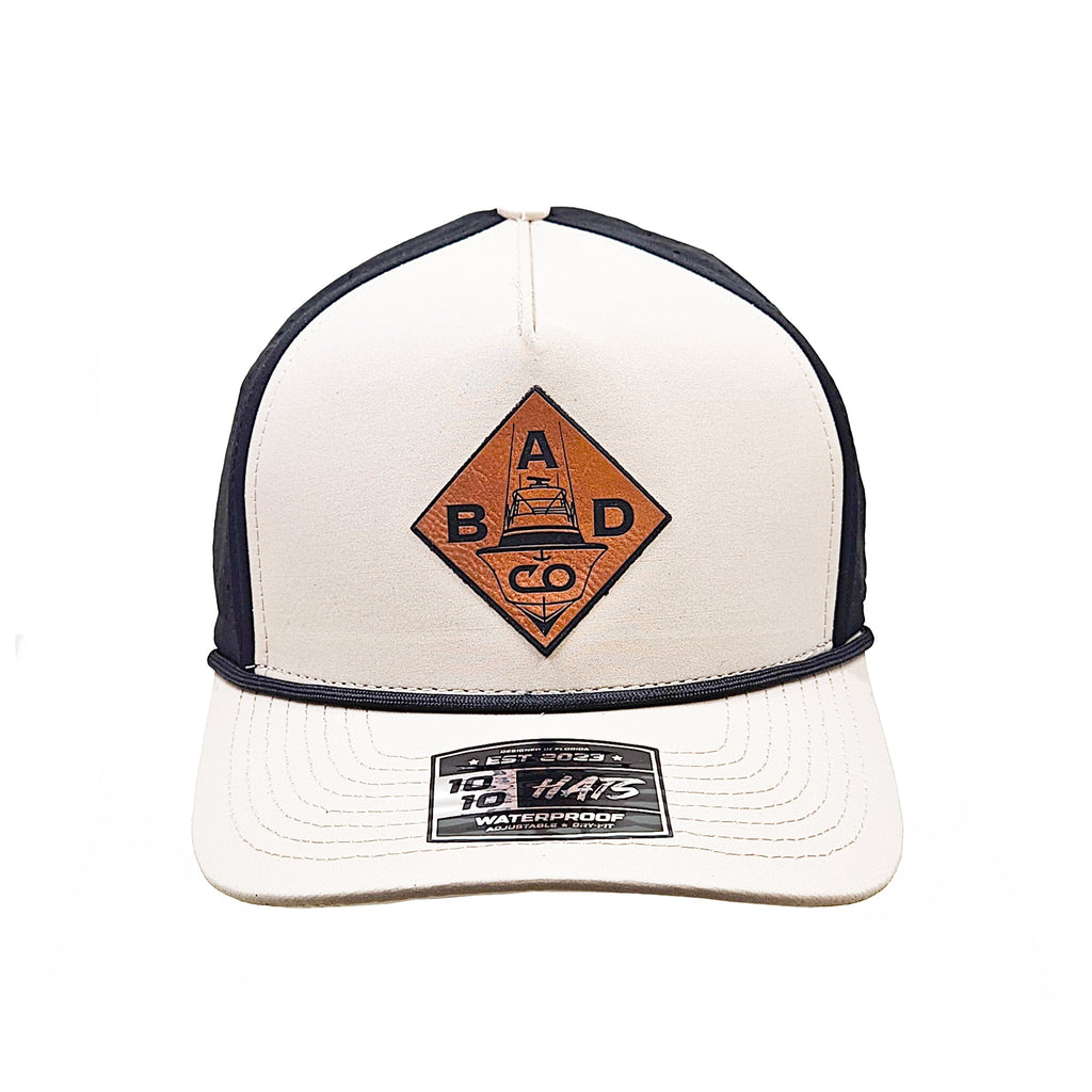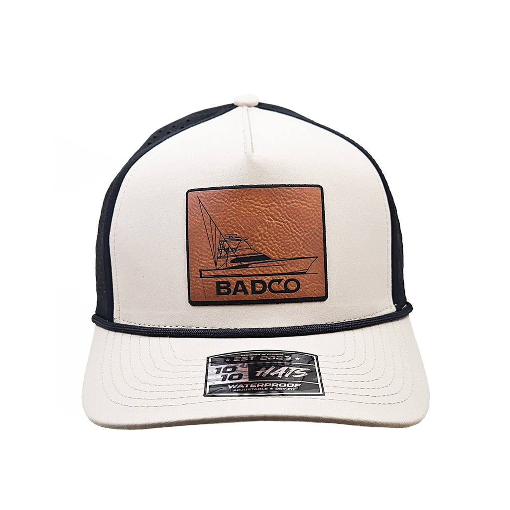 Clean and classic, this cream-and-black trucker hat features a premium leather patch with the BADCO logo. Lightweight, breathable, and ready for any adventure on or off the water.